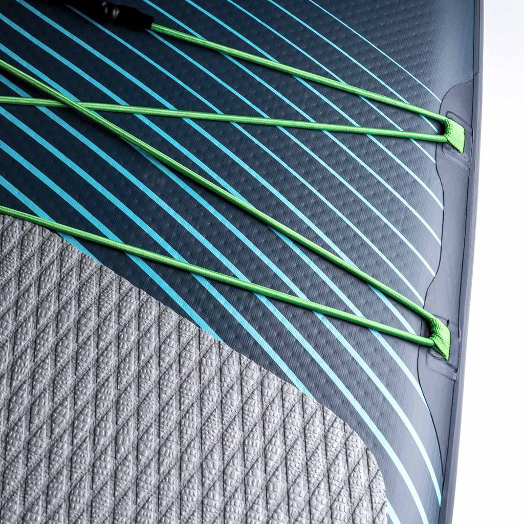 Das Movino Garda-Board ist mit starken Bungee-Seilen ausgestattet, die es Ihnen ermöglichen, noch mehr Gepäck mitzunehmen. Am Heck des Boards befindet sich ein D-Ring zum Anbringen eines Sicherheitsleashes und ein Ventil zum Aufblasen des Boards. Zusätzliche Ringe ermöglichen die Befestigung eines Kajaksitzes mit einer praktischen Rückentasche, und das Doppelpaddel ermöglicht sowohl im Stehen als auch im Sitzen zu paddeln. Spezielle Griffe machen den Transport und das Herausnehmen des SUPs aus dem Wasser mühelos.