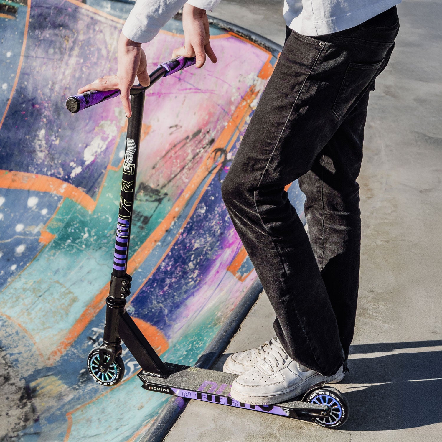 Bei Movino Pro Scooters entwickeln wir zusammen mit Profis Ausrüstung, mit der Fahrer ihre Stunt-Scooter-Reise noch einmal von vorne beginnen würden. Also, beginne auch du dein Abenteuer mit uns und dem Nitro-Modell! Die Kombination aus einem leichten Deck und 100-mm-Rädern mit ABEC-9-Lagern bietet dir Wendigkeit und Präzision, die sich bei der Erlernung deiner ersten Tricks auszahlen werden.