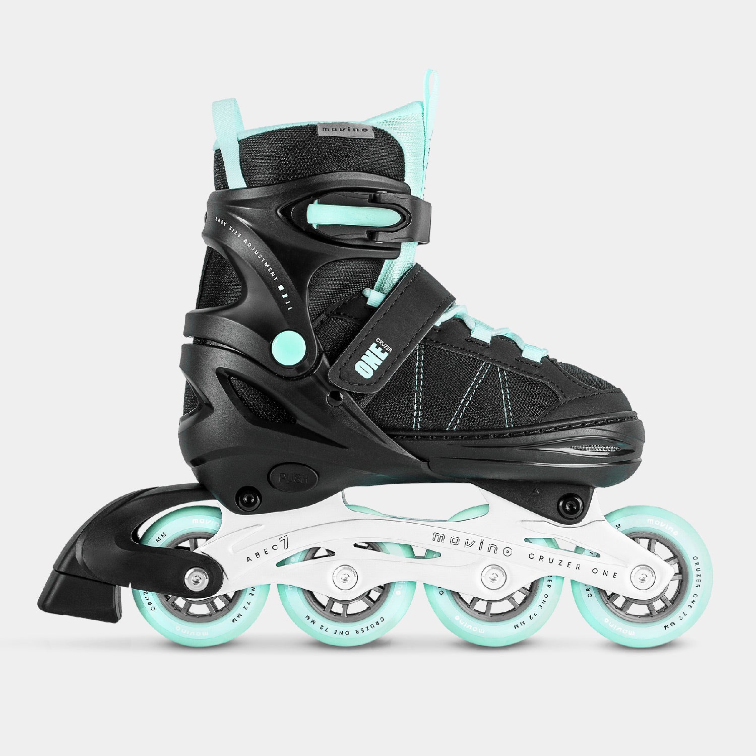The adjustment system in the Movino Cruzer One rollerblades allows you to enjoy them for several years. Mastering the 4-step adjustment is child’s play: unfasten the Velcro, press the “PUSH” button, and set the size that fits you. The skates are available in three versions: