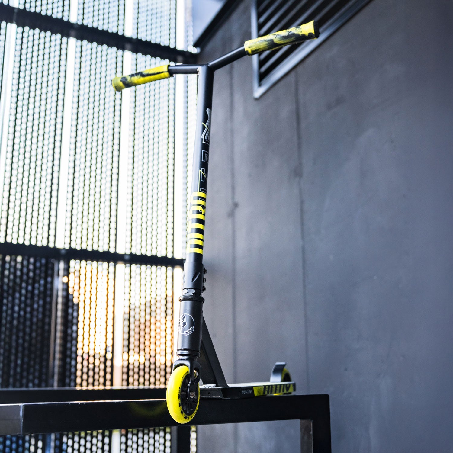 Textured 160mm TPR grips provide a secure hold on the handlebars and control during rides and tricks, while the flex fender slows down and, when necessary, stops the speeding scooter. The Movino Nitro Lemon keeps the bar high and jumps over obstacles together with the rider at every skatepark session – with top marks for style!