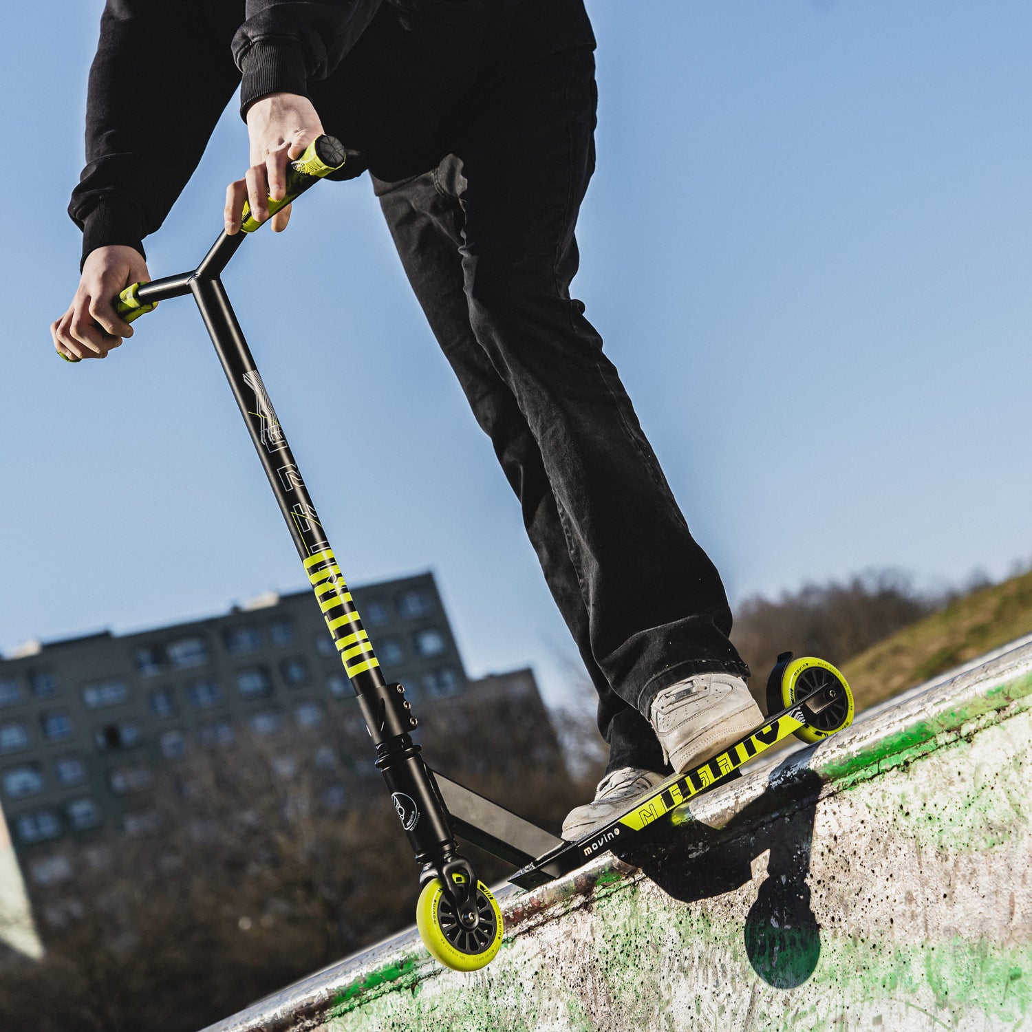 We know that a scooter for beginners can combine high quality and a design that isn't boring, so we created it – the Movino Nitro Lemon! The experience gained through constant collaboration with talented and award-winning riders has resulted in pairing a lightweight, agile, and stable deck with fast and comfortable 100mm wheels featuring ABEC 9 bearings. This combination is eager to take off and ensure safe landings!