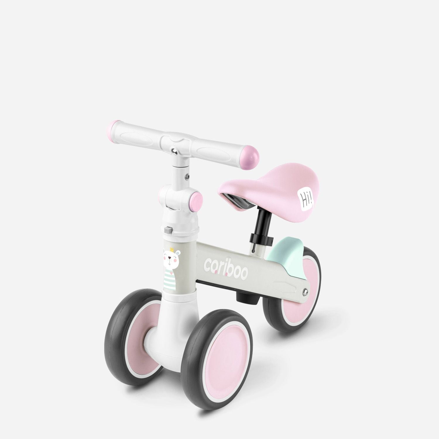 Cariboo Friends is designed to grow with your child, offering extended usability. It features an adjustable seat (25–30 cm) and a handlebar with five position settings, allowing simple adjustments to its angle to suit your child’s needs.