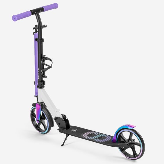 De Infinity Rainbow is een step die je altijd bij de hand kunt hebben. Dankzij het vouwmechanisme is de step in een mum van tijd ingeklapt, en met de praktische draagriem draag je hem comfortabel over je schouder, net als een tas. Hij weegt slechts 3,5 kg, waardoor je hem probleemloos meeneemt naar school, in het openbaar vervoer of tijdens een uitstapje met vrienden.