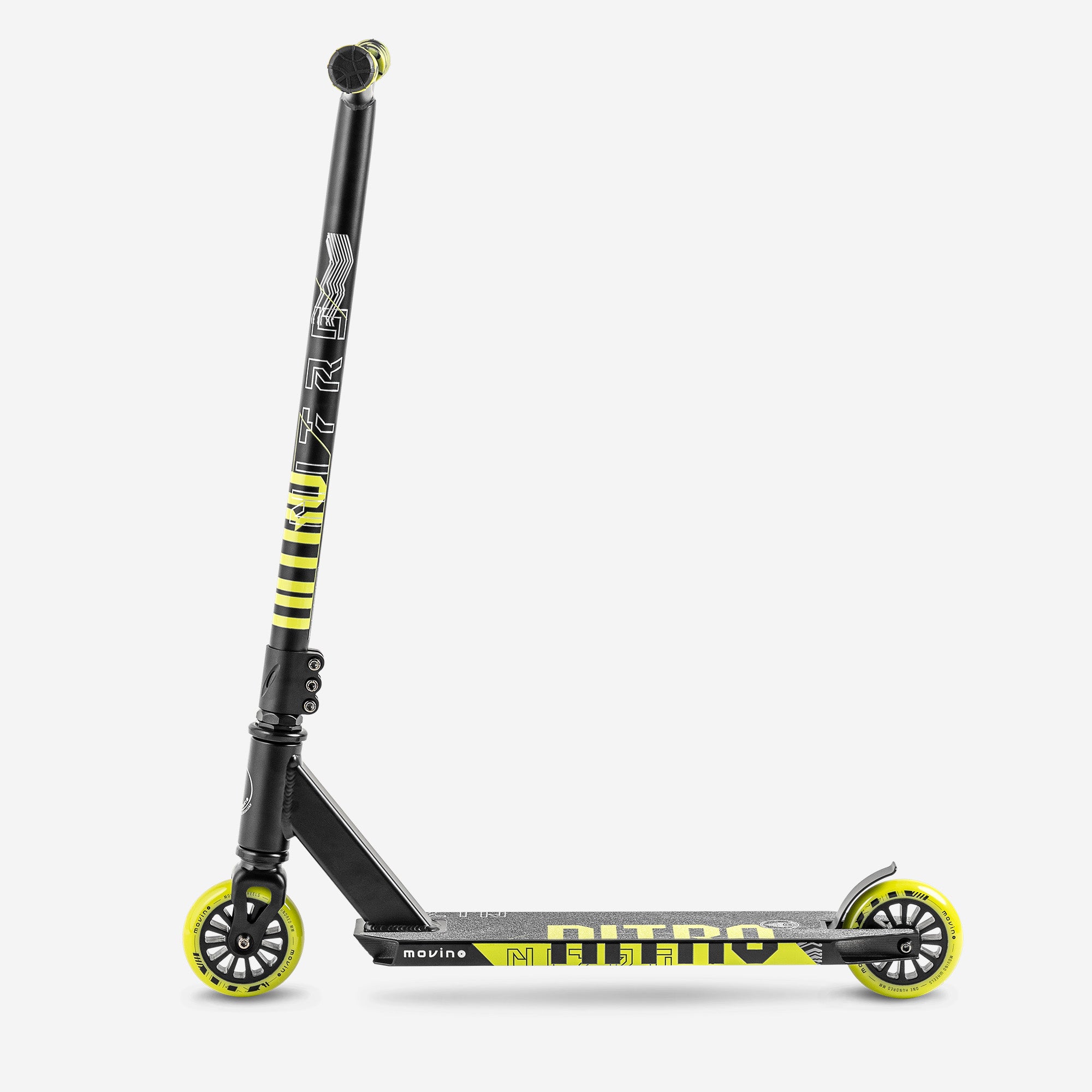 Toen we het Nitro-model ontwierpen, wilden we dat beginnende rijders een zo gemakkelijk mogelijke instap zouden hebben voor hun eerste trucs. Het geoptimaliseerde deck, gemaakt van duurzaam en licht aluminium, is precies wat jongere rijders nodig hebben!