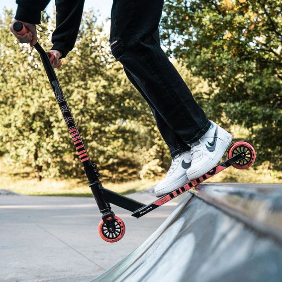 De parameters van het Nitro-model zijn gekozen om het leren van trucs gemakkelijker te maken. De 100 mm wielen met ABEC9 lagers vallen op door precisie en wendbaarheid, waardoor het trainen van nieuwe trucs een eitje is. Het FLEX FENDER remsysteem zorgt ervoor dat de wielen langzamer slijten. De 160 mm handgrepen met geribbelde TPR-textuur zorgen voor een stevige grip.