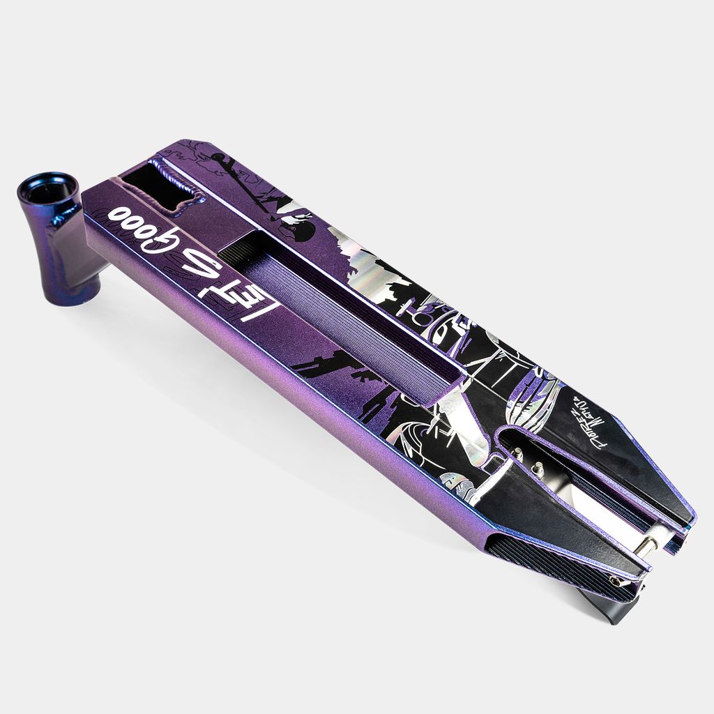 Het geoptimaliseerde parkdeck voor de stuntstep weegt slechts 1,2 kg. Ondanks zijn lichte gewicht is het uiterst duurzaam, zodat je dagelijks zonder zorgen kunt trainen. Met een lengte van 46 cm en een breedte van 12 cm is dit deck perfect afgestemd op tricks in het skatepark. De parameters zijn zorgvuldig gekozen om rijders van elk niveau te ondersteunen bij het uitvoeren van hun moves.
