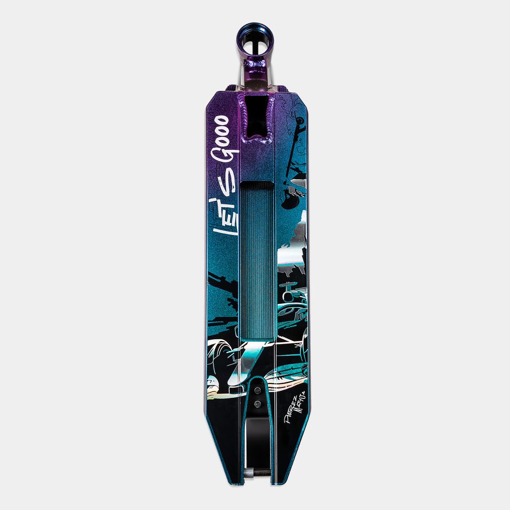 Dit deck is volledig vervaardigd uit hoogwaardig aluminium. Het is compatibel met het IHC-compressiesysteem en de vlakke onderzijde maakt het eenvoudiger om airs en slides uit te voeren. Originele graphics en kleuren maken het ontwerp compleet – een extra dosis motivatie om steeds weer het park in te gaan!